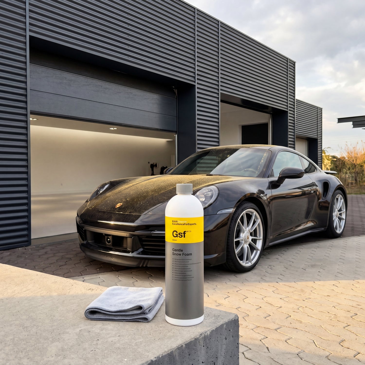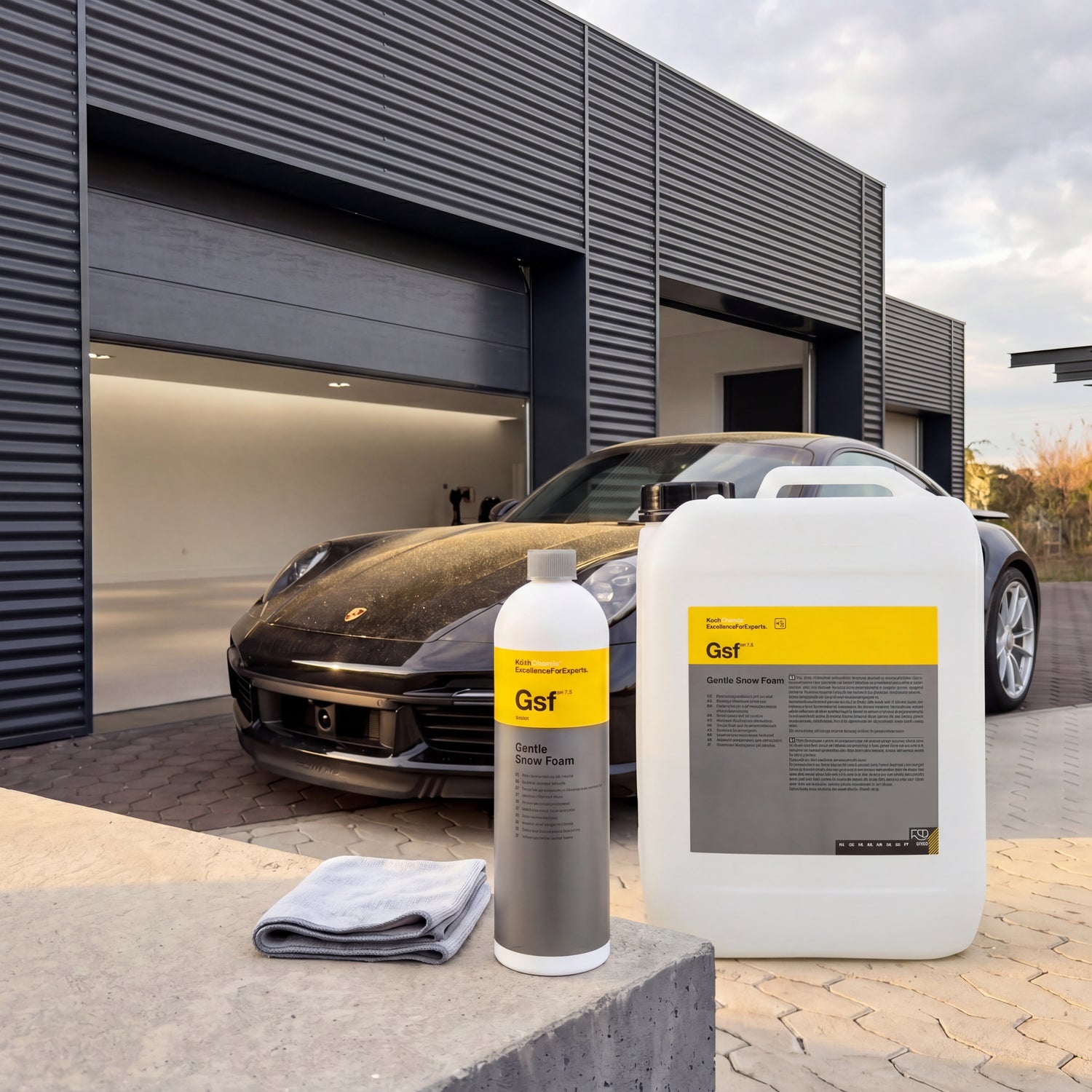 The 1-liter bottle is enough for about 50 washes, the 5-liter canister for 250 washes. Anyone who maintains more than one vehicle or works in a detailing studio will save about 30 percent per application with the 5-liter container. Combined with a pH-neutral shampoo like Koch-Chemie Nanomagic Shampoo or GYEON Q² Bathe+ for the two-bucket wash and a drying towel for finishing, you have the complete weekly workflow for a well-maintained vehicle – from the first jet of water to the last drop, without attacking your sealant.