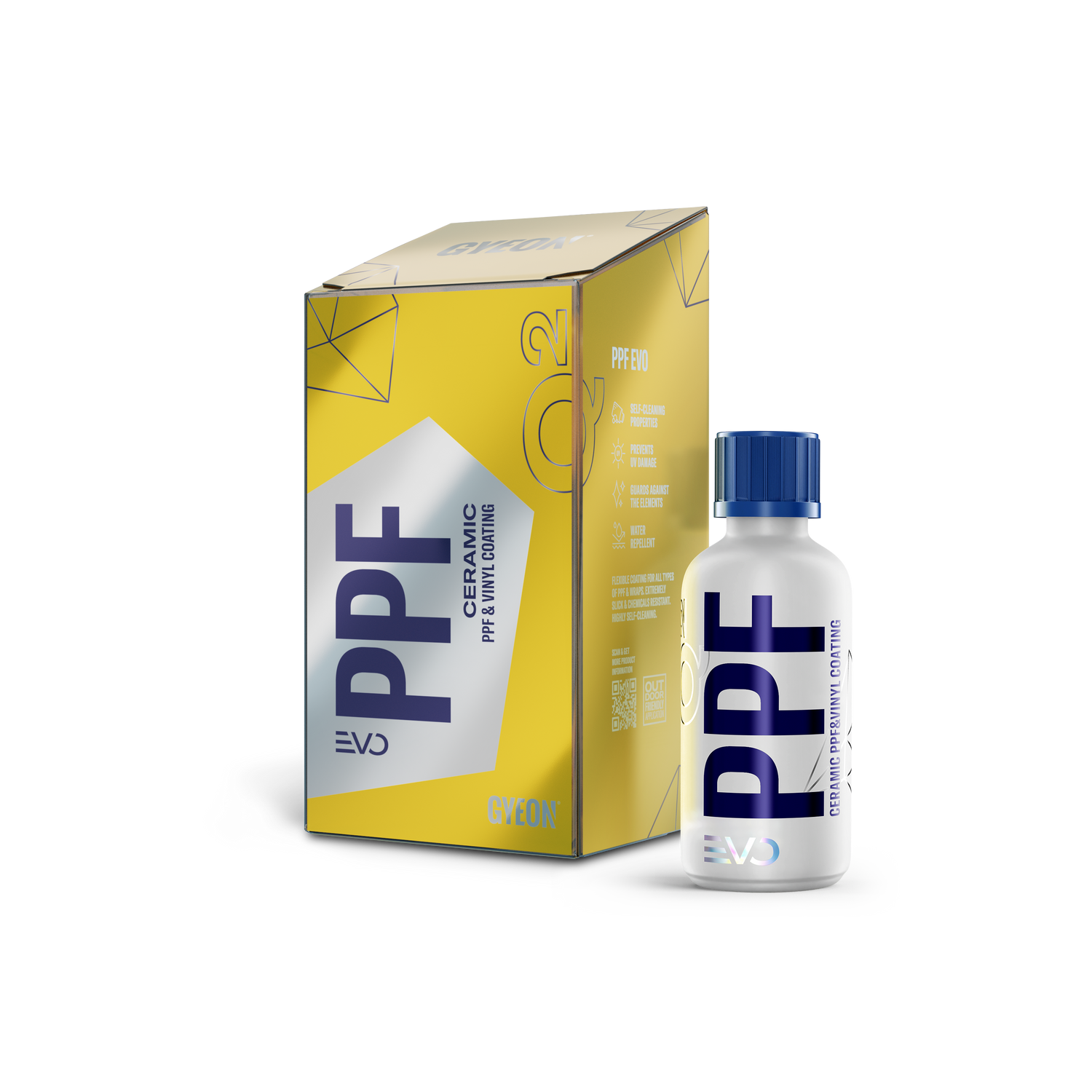 GYEON Q² PPF EVO Ceramic Coating ist eine speziell entwickelte Keramikversiegelung für Lackschutzfolie, die Transparenz und Glätte erhöht, intensive Hydrophobie erzeugt und die Pflege von glänzender sowie matter PPF langfristig erleichtert.