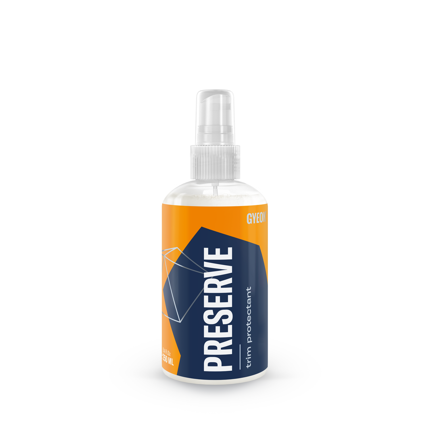 GYEON Q²M Preserve ist eine wasserbasierte Kunststoffpflege für Innen- und geschützte Außenbereiche, die Oberflächen auffrischt, vorzeitigem Ausbleichen entgegenwirkt und ein natürlich mattes, nicht speckiges Finish hinterlässt.
