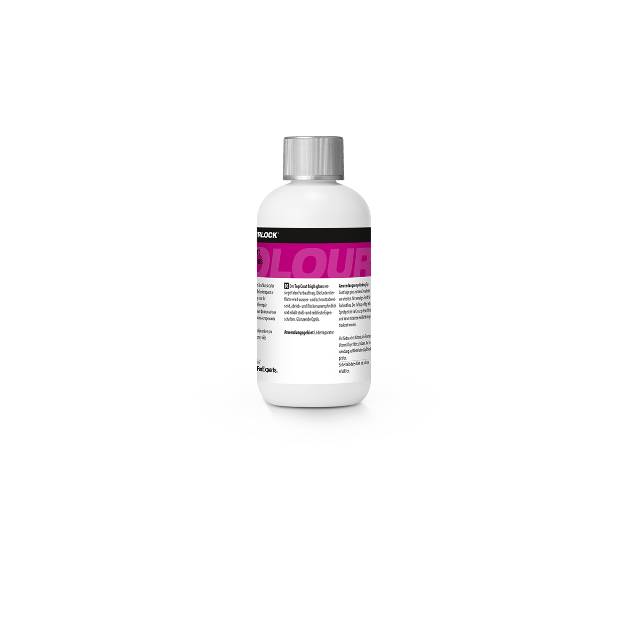 Was macht COLOURLOCK Top Coat High Gloss? — Der hochglänzende Abschlusslack schützt farblich repariertes Leder dauerhaft und erzeugt ein extrem brillantes, spiegelndes Hochglanzfinish für dekorative Möbel-, Fashion- und Interieurleder.