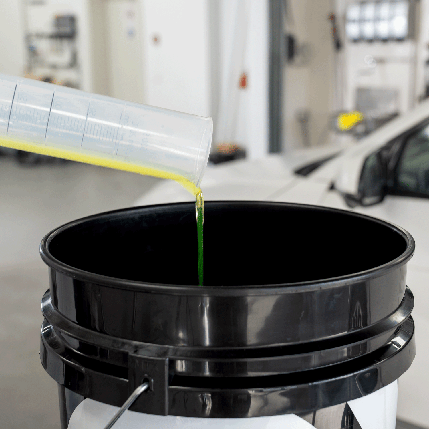 Vorwäsche bedeutet: kühle Oberfläche, Schatten, Bauteile vorwässern. THE FINISHER TropicSnow Schaumshampoo im passenden Mischverhältnis ansetzen, gleichmäßig auftragen und 3–5 Minuten arbeiten lassen. Nicht antrocknen lassen, bei Bedarf nachnebeln. Danach gründlich und druckvoll abspülen. Jetzt ist die Fläche vorbereitet für die Zwei-Eimer-Wäsche mit frischem Handschuh; der verbleibende Gleitfilm unterstützt die sichere Bewegung über den Lack.