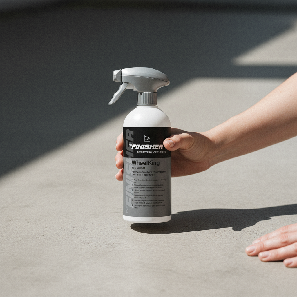 Reaktiver Felgenreiniger wie THE FINISHER WheelKing Felgenreiniger arbeitet über die Bindung von Eisenpartikeln aus Bremsabrieb und Flugrost. Die Gelstruktur sorgt für ruhige Benetzung, sodass Wirkstoffe Zeit haben, Partikel anzulösen; der Farbumschlag zeigt dir, wo die Reaktion läuft. Weil die Formulierung säurefrei und pH-ausgewogen ist, bleibt die Arbeit materialschonend: Klarlacke, Pulverbeschichtungen und lackierte Bremssättel behalten Glanz und Haptik. Auf empfindlichen Sonderoberflächen – poliert, unlackiert, eloxiert – gilt: Testspot im verdeckten Bereich, kurze Standzeit, sofortiges Abspülen. Heiße Felgen, direkte Sonne und antrocknende Chemie sind Tabu – so bleibt der Prozess sicher.