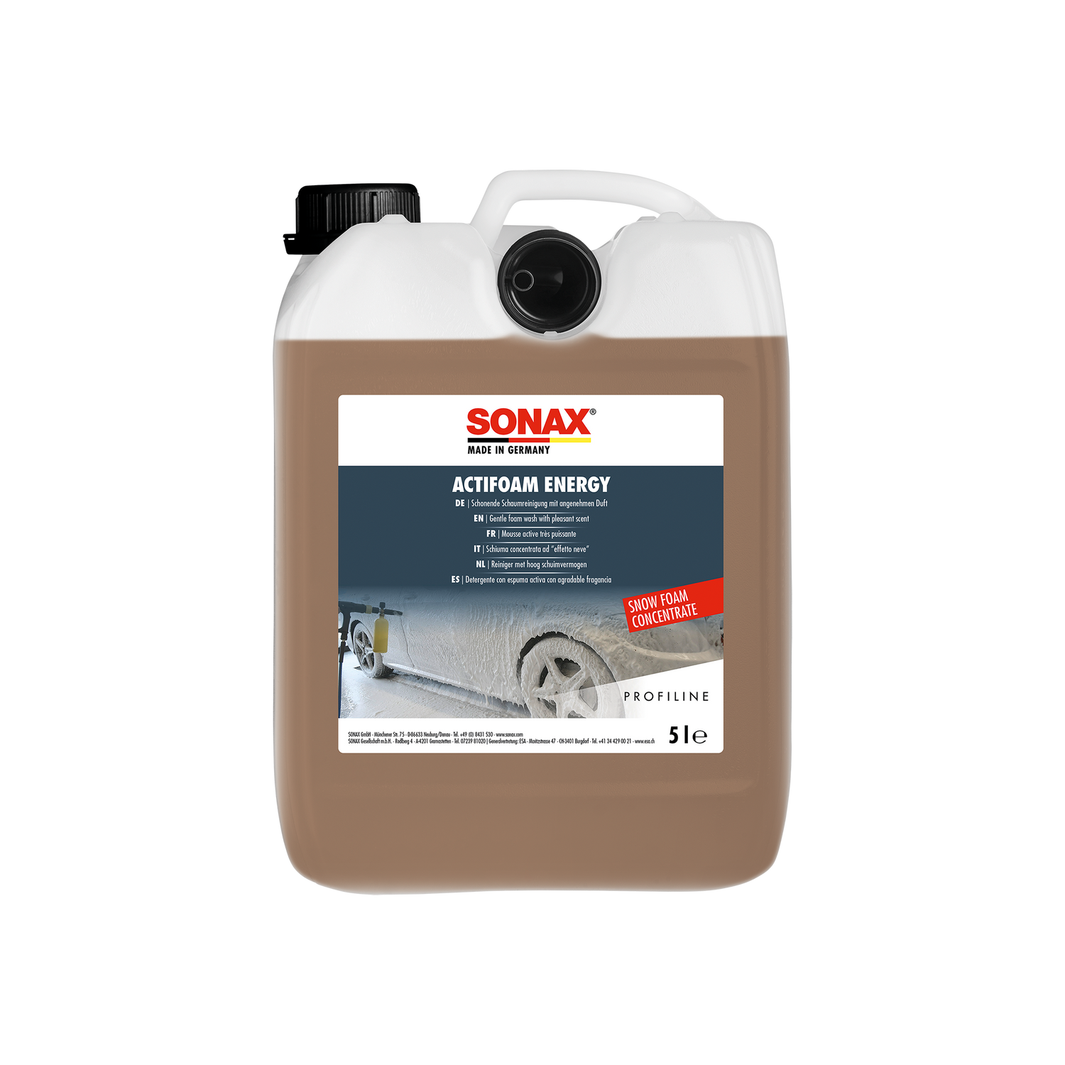 Der Sonax PROFILINE ActiFoam Energy bietet eine effektive und schonende Reinigungslösung für alle Fahrzeugoberflächen. Mit seiner leistungsstarken Schaumformel löst er hartnäckigen Schmutz und sorgt für eine gründliche Reinigung. Ideal für die Anwendung mit einer Schaumlanze oder als Shampoo für die Handwäsche, entfernt er zuverlässig Insektenreste und Felgenschmutz und ist dabei pH-neutral sowie materialschonend. Besonders geeignet für versiegelte Oberflächen und Folierungen.